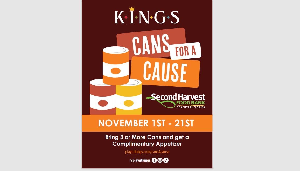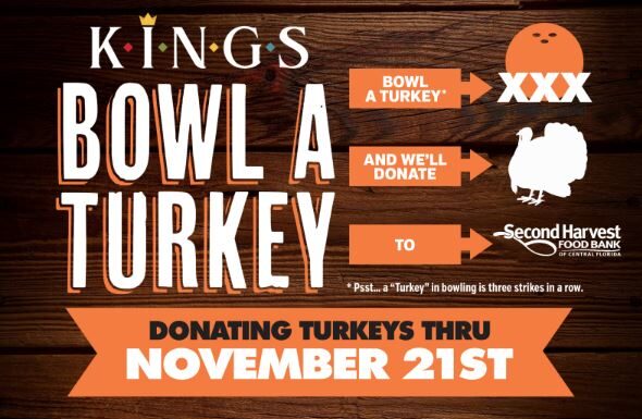 One strike, two strikes, three strikes... that’s a turkey! It is the season of giving, and we're spreading the love by giving back to our local food pantries. How? It's simple! Bowl a Turkey (that's 3 strikes in a row) between now and November 21st and Kings will Donate a Turkey to help provide a holiday […]