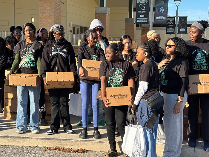 High school students Gabrielle and Elizabeth were grateful for the opportunity to volunteer at Evans High School to help other kids and their community.