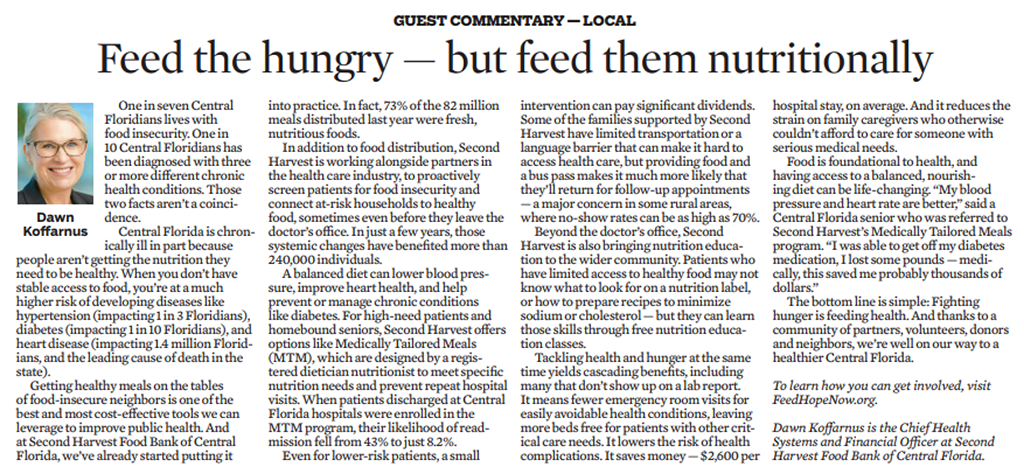 The bottom line is simple: Fighting hunger is feeding health. And thanks to a community of partners, volunteers, donors and neighbors, we’re well on our way to a healthier Central Florida.