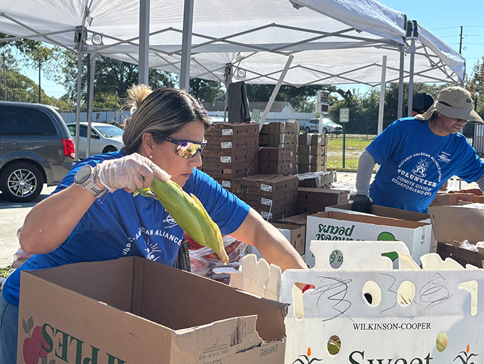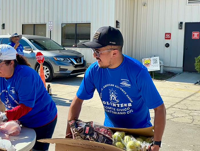 Lorena explains that Comite Civico started its food pantry during the pandemic. At the first distribution, 75 families showed up. Over time, the need has exploded and now the organization serves between 500 and 700 families each month.