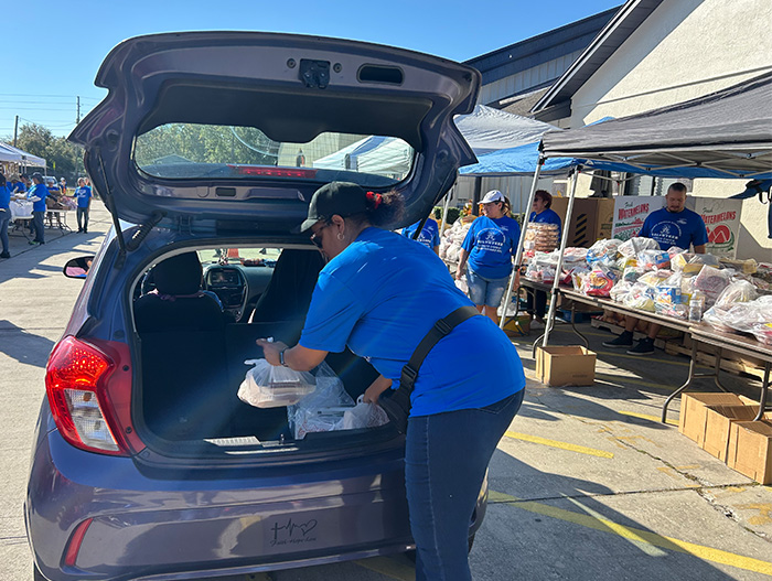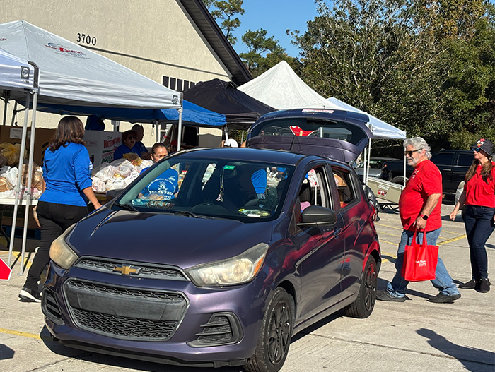 Families lined up for hours, some arriving as early as 11:00 p.m. the night before, illustrating the growing number of families seeking help with food assistance this holiday season. Volunteers from Winn-Dixie joined community members to help load a variety of fresh produce into cars, along with nonperishable staples and a turkey.